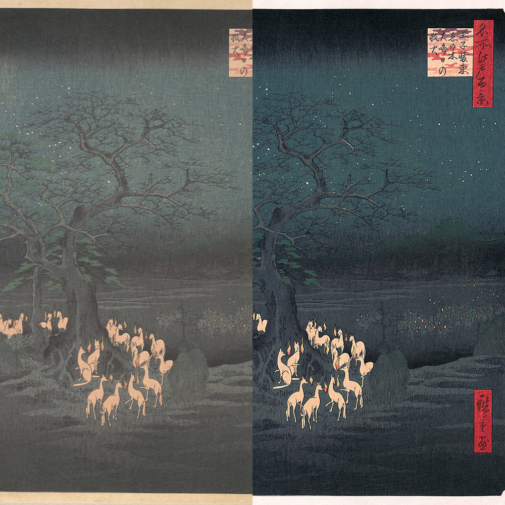 La viveza de los colores es uno de los atractivos del ukiyo-e, por lo que somos muy exigentes a la hora de reproducirlos.